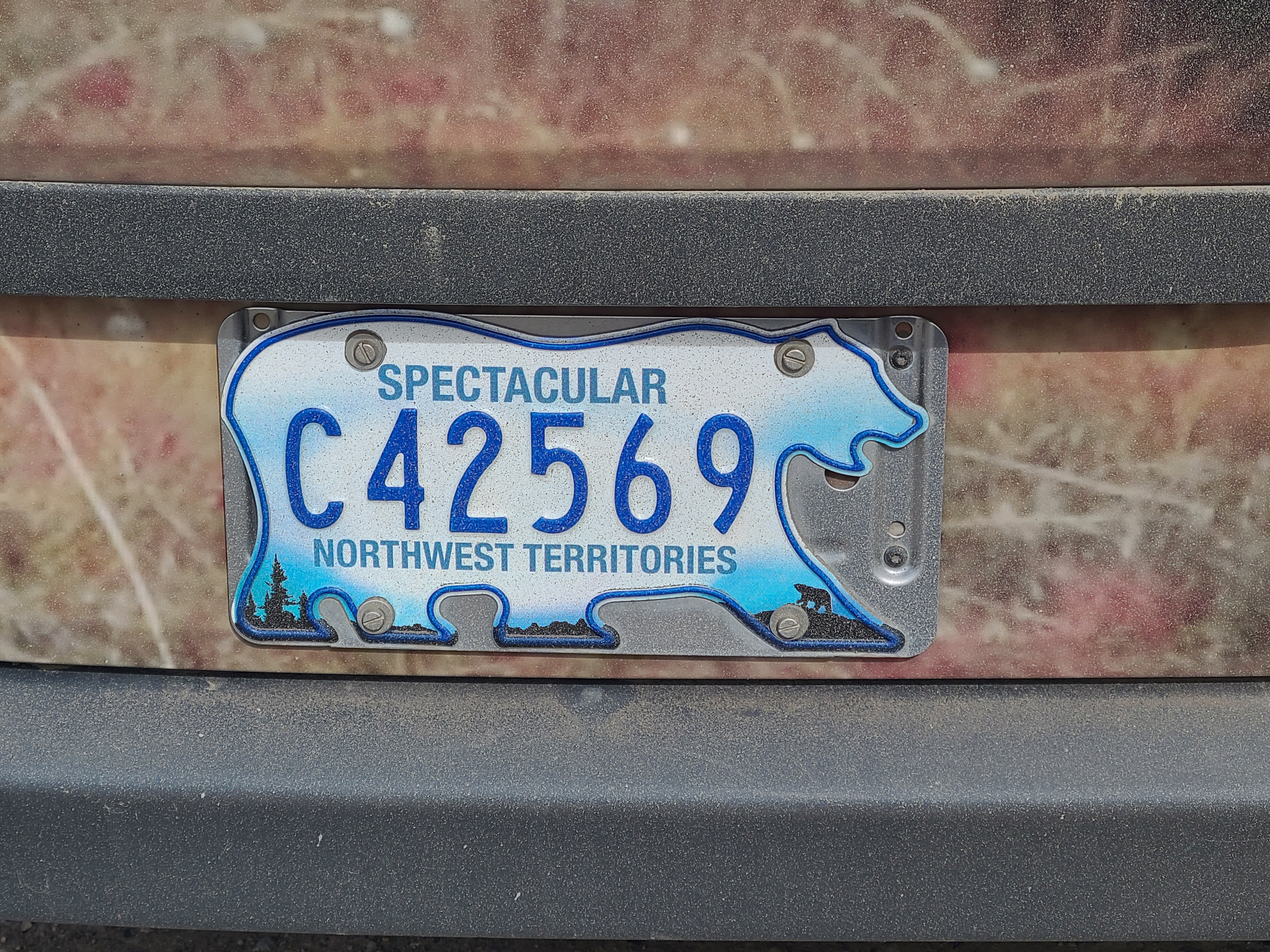 Check it out, y'all. The license plates are shaped like a bear! Awesome.