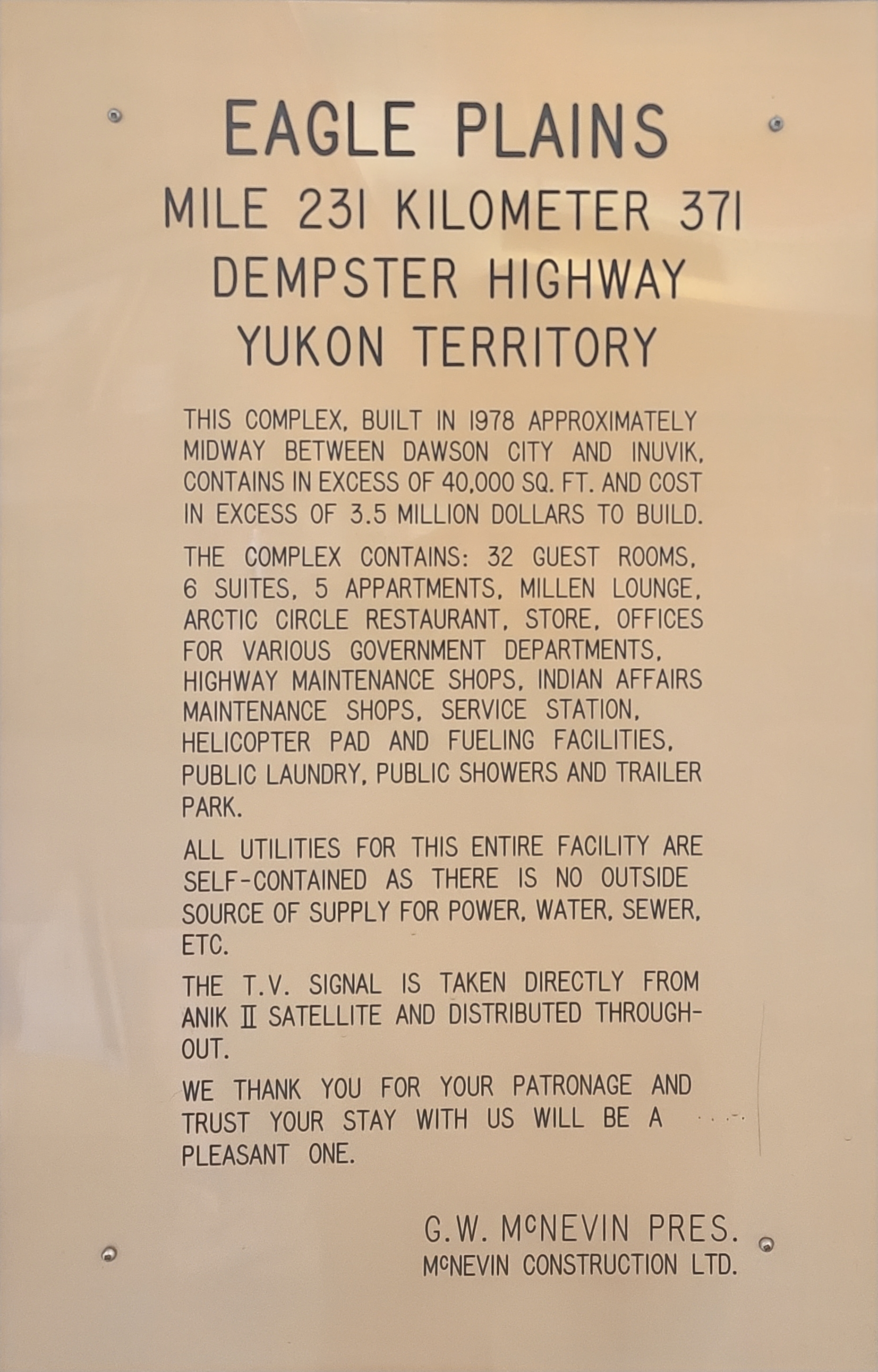 Cool plaque at the only Canadian civilization for 500 kilometers.