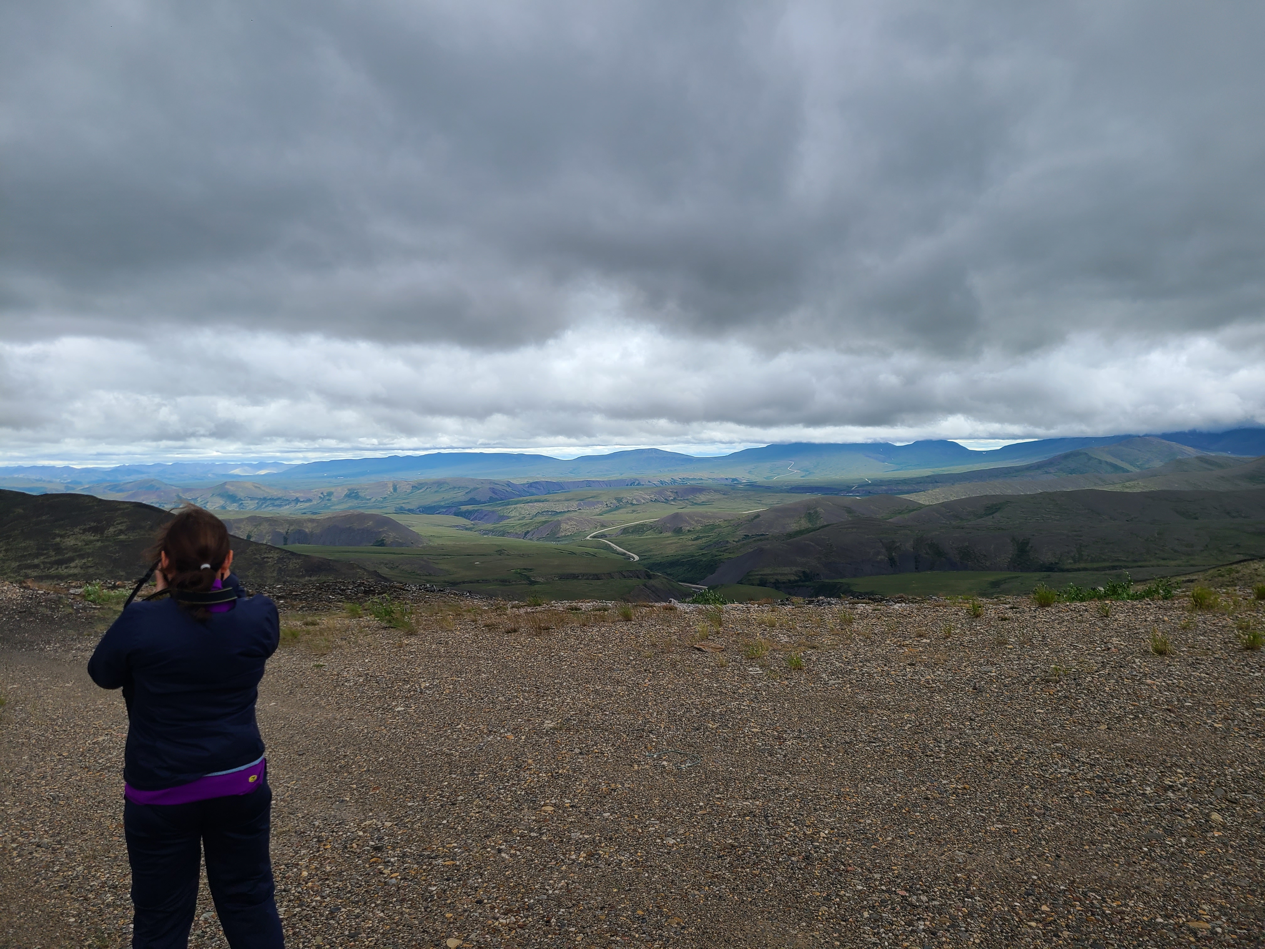 A majestic look back. Our new bff Wanda is in frame. Check out how built up the Dempster is, to keep it from sinking into the permafrost. Spoiler alert - it mostly worked.