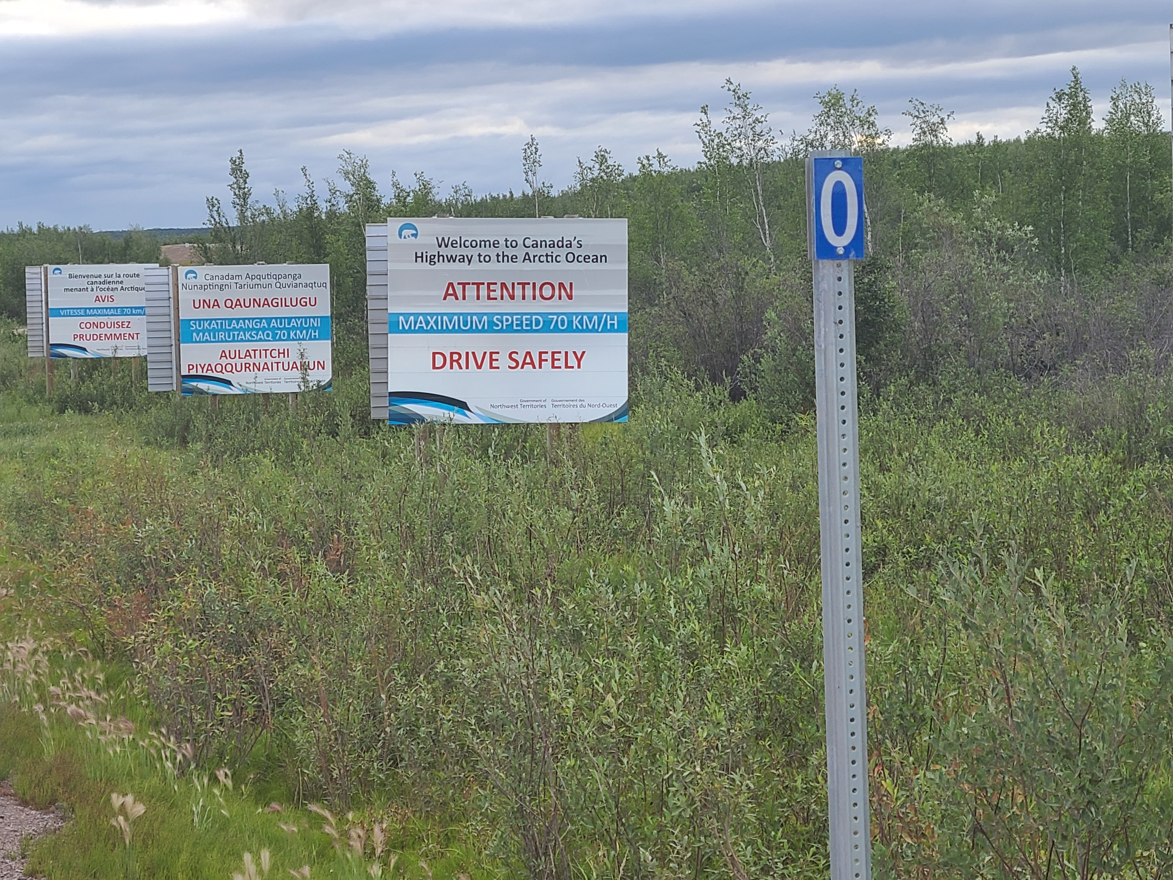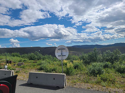 The beginning of an 800+ kilometer gravel road connecting Dawson to Inuvik and Tuktoyaktuk. Literally the only road north into the Western Canadian Arctic.