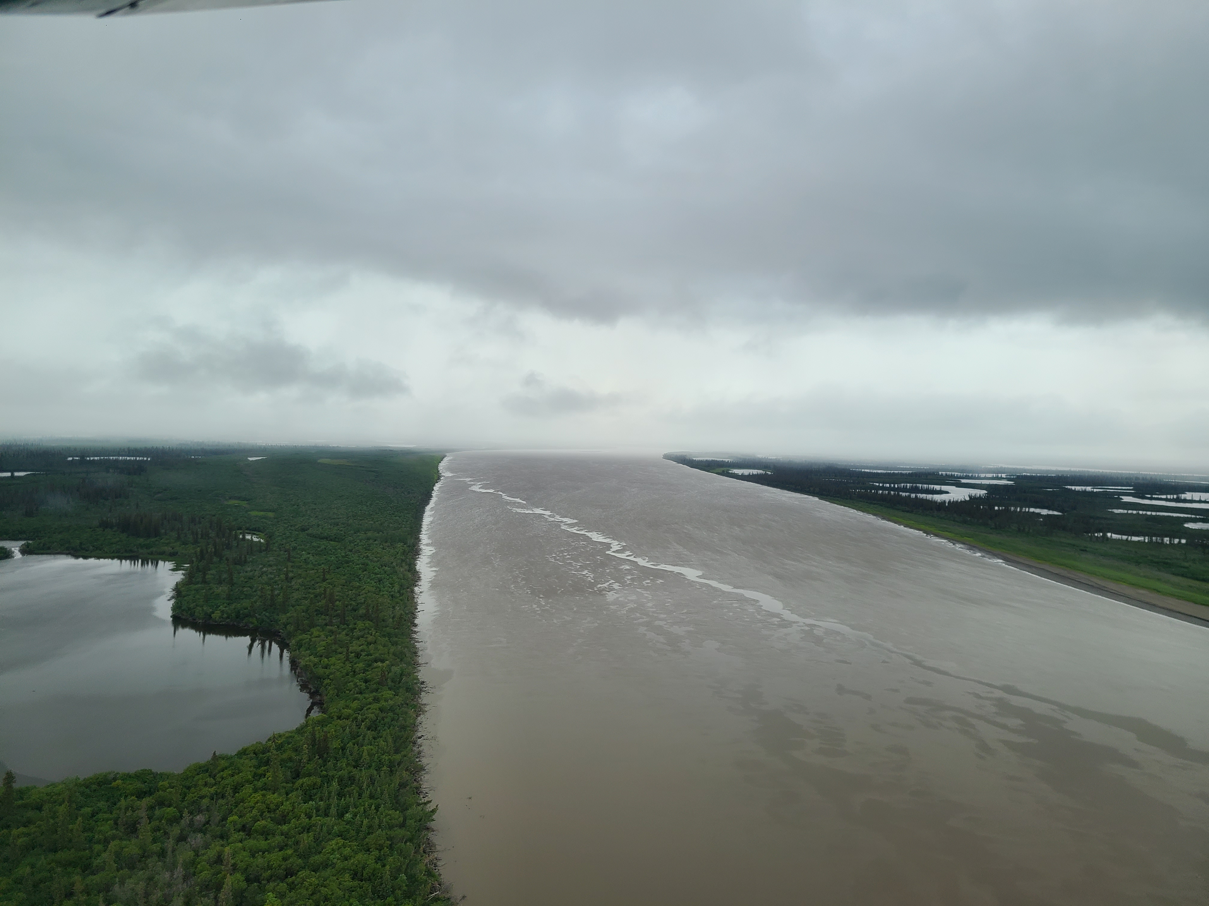Just look that. The water was cloudy from silt, glacial runoff, organics, you name it. Hardly any larger waves due to the fact that the moon is off to the side pulling at the water near the equator. Wild.