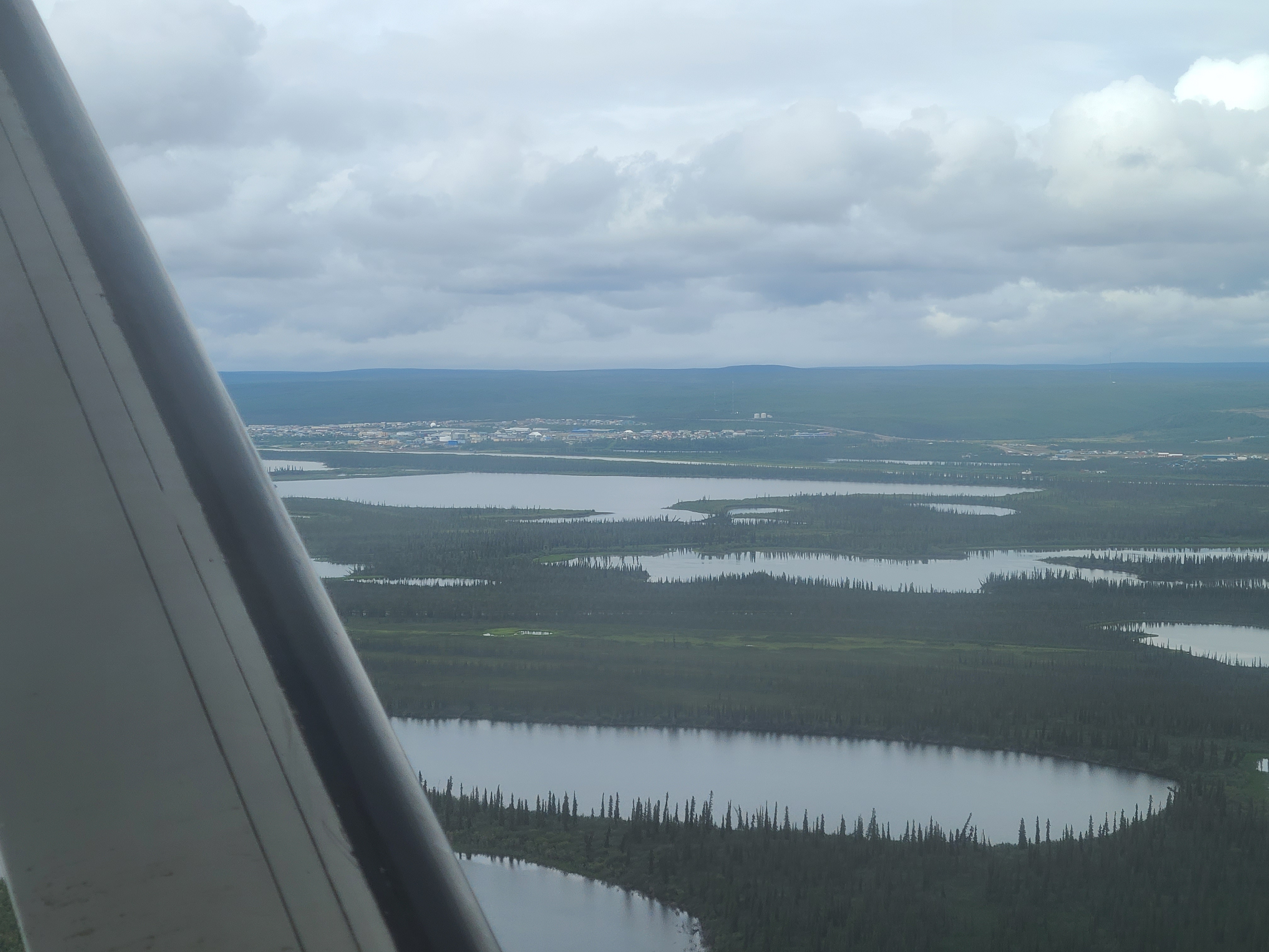 Delta lands, massive lakes, and the town of Inuvik in the distance. The horizontal body of water right before Inuvik is a channel that was dredged to facilitate...something.