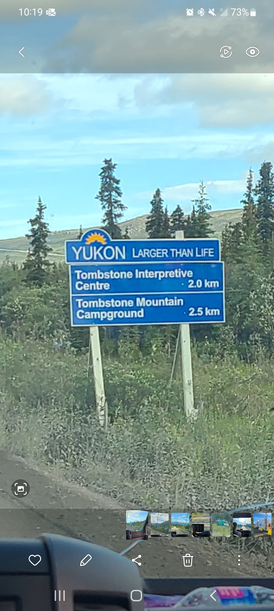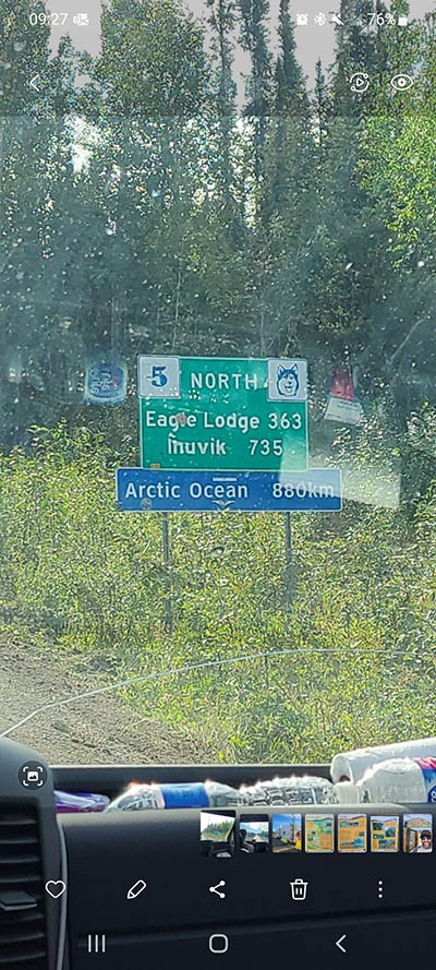 Pretty close to Tombstone Park, this is the only tourist street sign on the Dempster that I remember seeing.