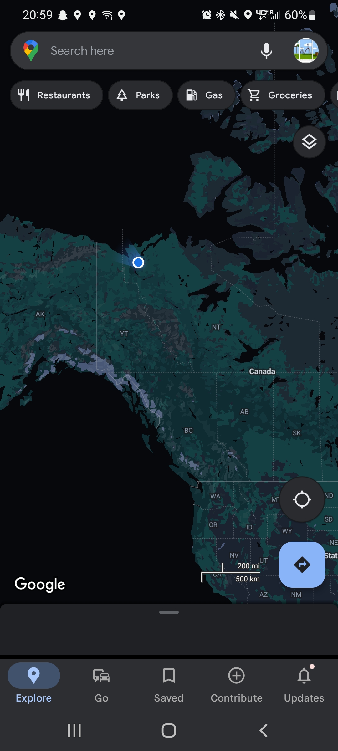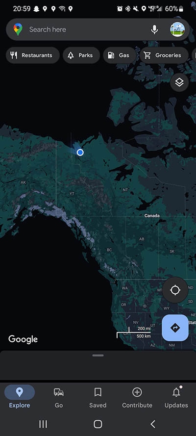 Our ping on google maps from Dawson, YT