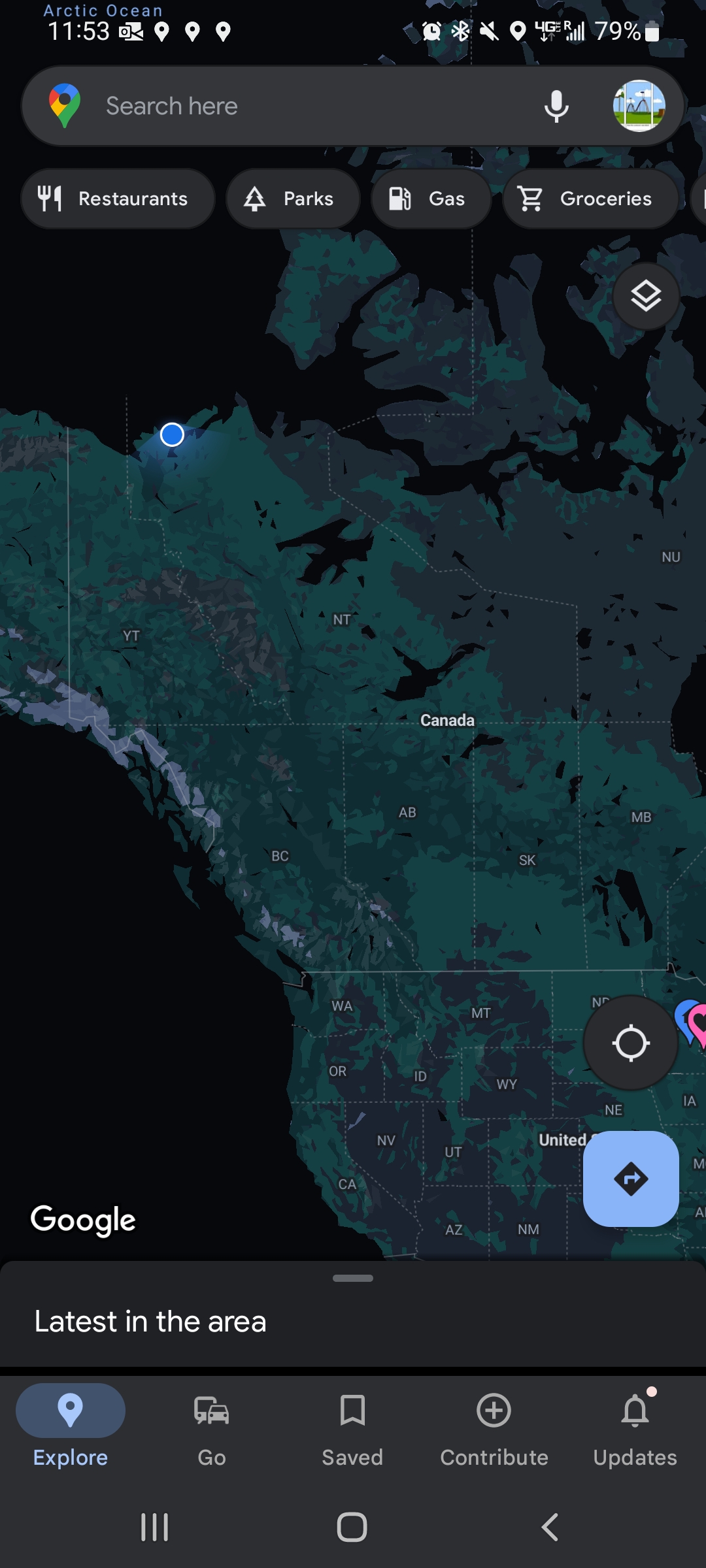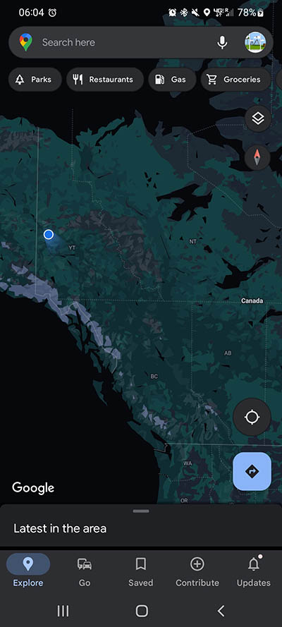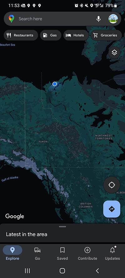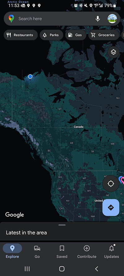 Our google maps ping from Inuvik, NWT.