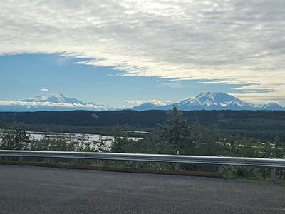 Heading towards Tok, Mt Drum and Mt Sanford are on our right/at our backs for an hour. We passed the HAARP installation.