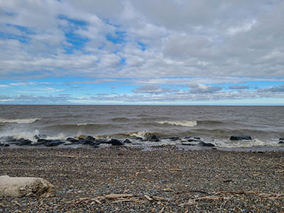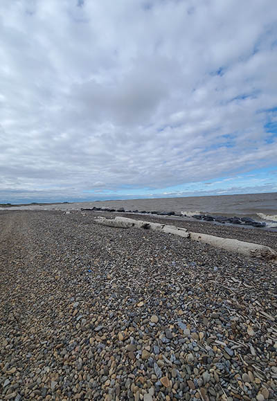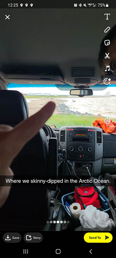 From snapchat, a different perspective of the Arctic Beach and our log in the distance.