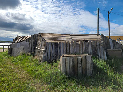 Inuits didn't live in igloos, which are temporary structures. They collected driftwood and made huge multi-generational homes. Behind this one was one covered in sod for insulation.