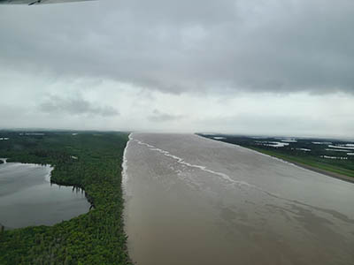 Just a hundred kilometers from where it drains into the Arctic Ocean, this part of the Mackenzie is a massive delta, with thousands of lakes and swamps.